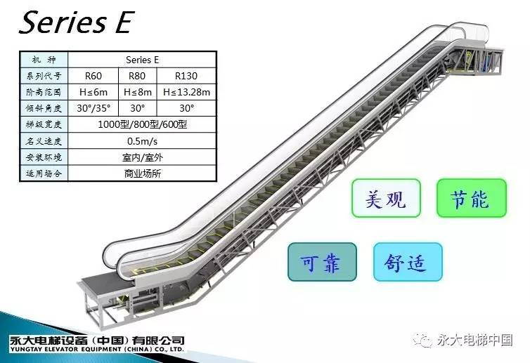 SeriesE、SeriesM系列新产品采用业界领先的梯路结构及产品设计,产品安装的土建跨距更短,维保空间更大,极大地提高了土建利用率,也使维保更方便。优越的变频控制系统,可根据乘客流量等相关变量条件,选择不同的节能控制方式,满足不同场所的使用要求,在节能和效率之间取得最佳平衡。两个系列的新产品具有运行更舒适、更可靠、更节能、更美观的突出特点。