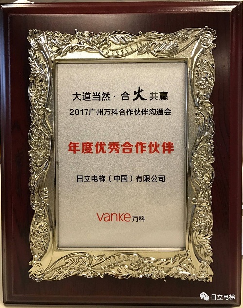 3月31日,2017年度广州万科合作伙伴沟通会在广州隆重举行,本次大会以“大道当然合火共赢”作为主题,并向优秀供应商颁发了奖项。其中,日立电梯继上月获颁万科“十五年长期合作奖”后,再次荣获大奖,被授予“年度优秀合作伙伴”称号。此次获奖,是万科对日立电梯在技术、品质、响应、交付等方面的认可,及对电梯解决方案和服务能力的肯定。