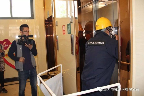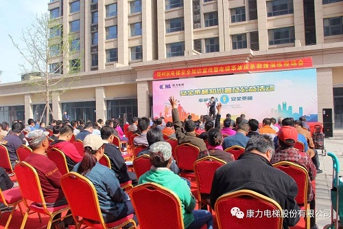 为真实模拟电梯突发事故,提高对应急处置和救援能力,康力电梯工程维保人员进行应急救援演练:现场演练模拟有人员被困电梯后,被困乘客马上拨打紧急电话与值班室联系反映电梯停运情况,值班人员第一时间向电梯维保公司和质量监督管理局报告情况,并立即赶往故障现场安抚被困人员情绪等待救援。救援人员赶到现场,立即展开营救,并对电梯进行了全面检查,排除故障,符合运营条件后,电梯又重新投入使用,演练结束。