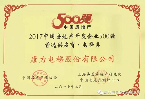 迅速提升的企业实力和市场影响力,助推康力电梯成功实施“大客户战略”。目前,公司已与碧桂园、绿地集团、世纪金源、海亮地产、荣盛地产、远洋地产、上海长峰地产、中南建设、海伦堡、正商地产等国内房产巨头建立长期战略合作伙伴关系,连续多年入围中国房地产500强首选十大电梯供应商(位列第7)、中国房地产关联服务优秀品牌企业等,以综合服务能力赢得市场、客户高度认可,形成合作共赢的品牌效应。