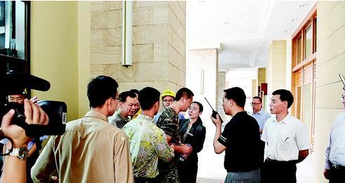 当日10时许,电梯困人救援演练正式开始。3名乘客在乘坐酒店观光电梯下行时突然“被困”,“被困”乘客通过电梯内的应急对讲系统发出求救信号。接到呼救后,酒店值班人员立即启动应急救援预案,一方面安排人员迅速到达现场与“被困”乘客取得联系并安抚他们;另一方面通知电梯维保单位立即赶赴现场处置。