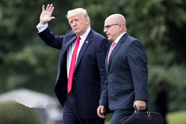 6月16日,在美国华盛顿,美国总统特朗普(左)和总统国家安全事务助理麦克马斯特离开白宫,前往迈阿密宣布美国对古巴政策。