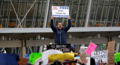 美国民众抗议特朗普的移民限制令。