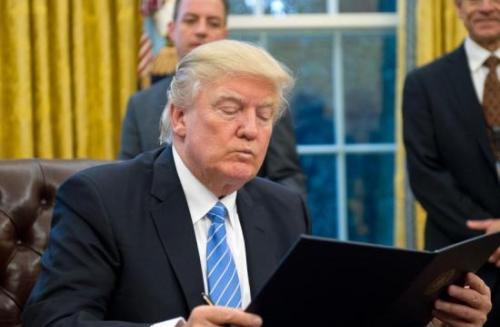 资料图:美国总统特朗普签署行政命令。