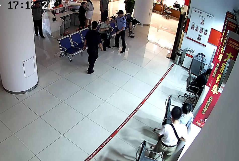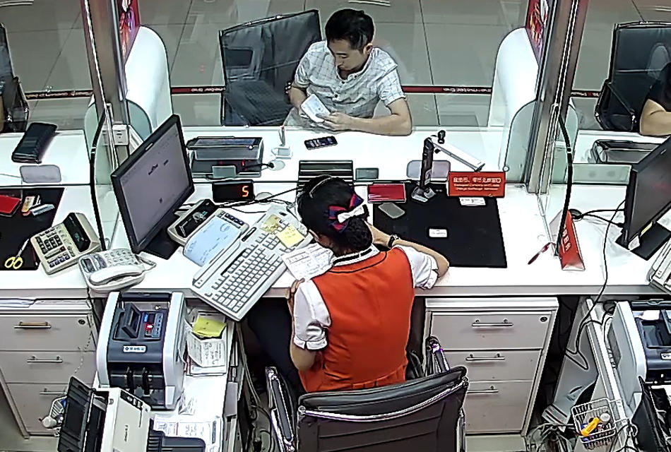 据了解,不小心进入传销组织后,传销组织会对成员想尽千方百计进行洗脑,甚至24小时派人跟进,连上厕所都有人跟着,如果不服从组织安排就不允许出门,即使出门也是2个人以上跟着,即便加入了组织后也不能够单独行动,都是几个人一起互相监督。邓先生只好假装妥协等待获救,在被传销组织控制5个月获得信任后,借口来银行办业务,发出求救信号从而成功逃出魔爪。图为事发时柜员报警监控画面。