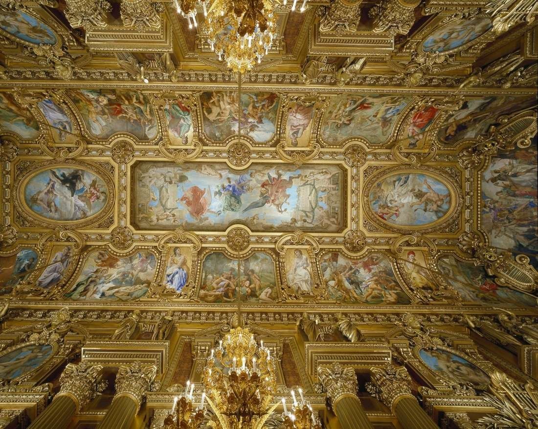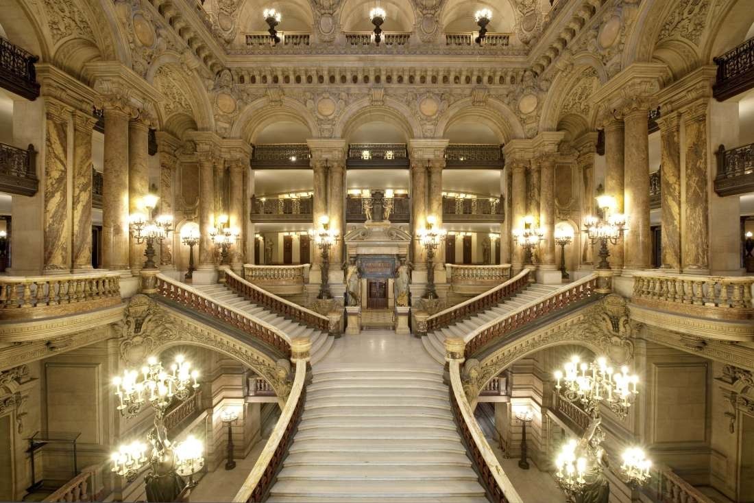 歌剧院是由查尔斯·加尼叶于1861年设计,长173米,宽125米,总面积11237平方米,并于1875年落成,历时15年。剧院有着全世界最大的舞台,可同时容纳450名演员,拥有2158个座位。它的建筑结构极为复杂,据说有2531个门,7593把钥匙和6英里长的地下暗道。歌剧院的地下层,有一个容量极大的暗湖,湖深6米,每隔10年剧院就要把那里的水全部抽出,换上清洁的水。