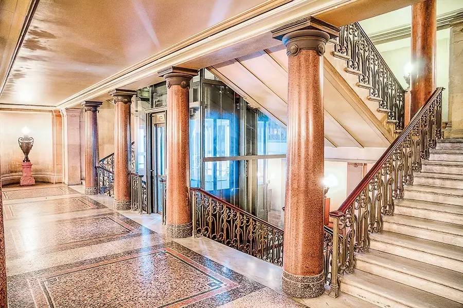 威特面临的挑战是提供现代化安全的新轿厢同时使其外观符合19世纪建筑的风格!