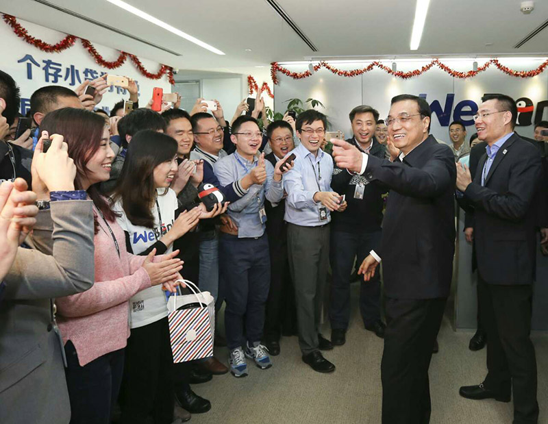 在2015年1月4日的考察中,李克强鼓励微众银行进一步降低利率,让大众创业万众创新的成本大幅度降低,让小微企业有更大的发展。“你们是第一家互联网金融银行,第一个吃螃蟹,同时,你们也是在倒逼传统金融行业的改革!”总理当时说。
