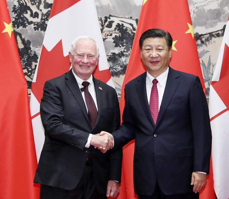 国家主席习近平13日在钓鱼台国宾馆会见加拿大总督约翰斯顿。