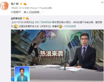 他说:“小伙伴儿们,我只想告诉你们,热不仅仅是今天的事儿,明天后天大后天都是热情似火的艳阳天,原本想空调WiFi西瓜,却热得差不多能出锅撒把葱花。”