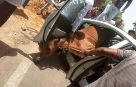 印度持续的高温不仅快把人热死了,就连马儿也变得躁动,有一匹马儿就挣脱了马车缰绳,直直撞进一辆汽车里,事发当地中午的温度高达42度,警方认为这马是“晒傻了”。