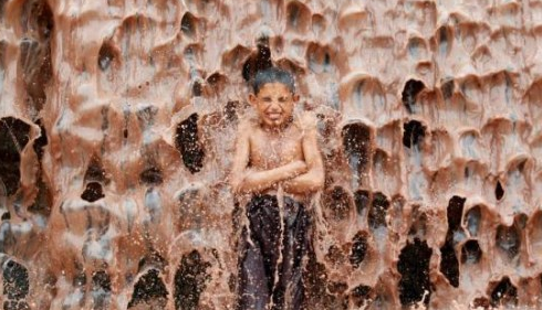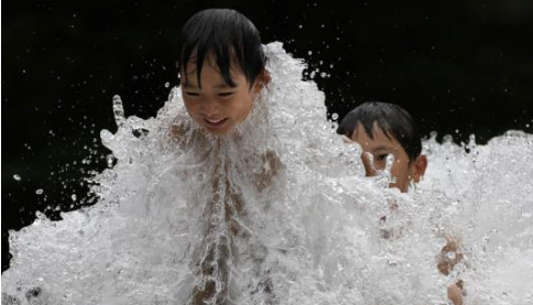 在日本人们,或选择在喷泉处纳凉嬉戏,或是在游泳池下水畅游。