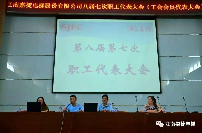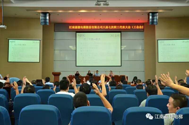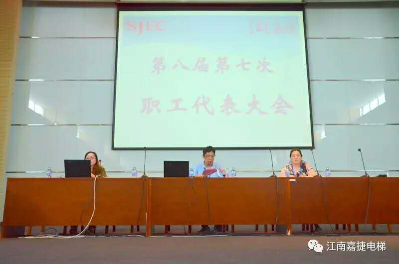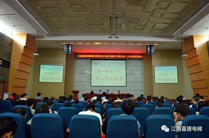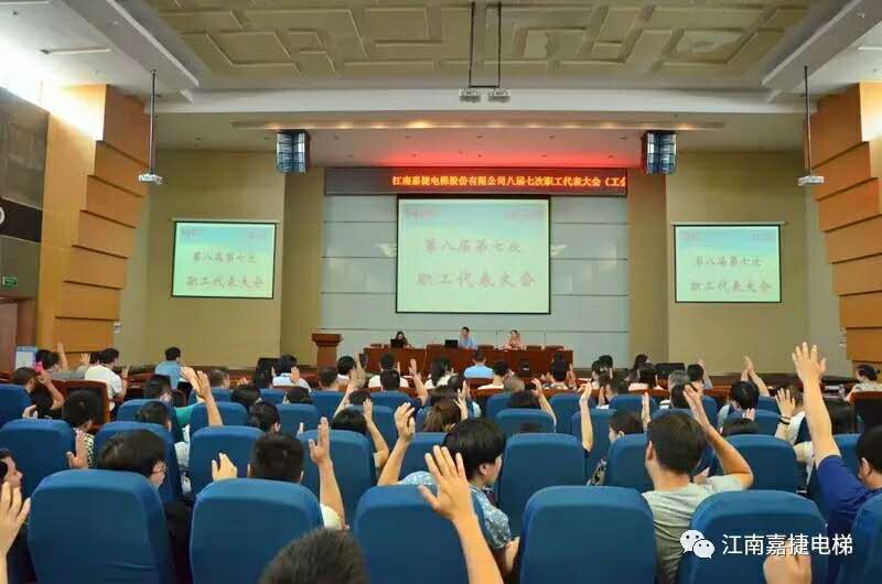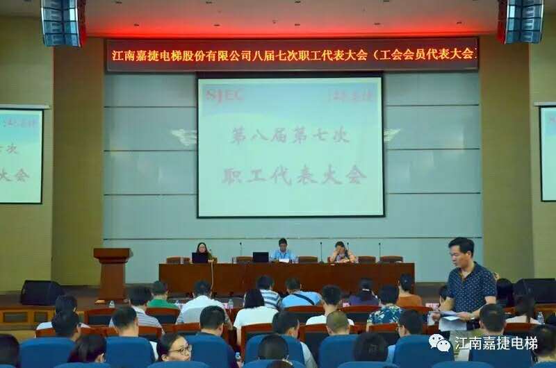 2017年7月15日,江南嘉捷电梯股份有限公司第八届第七次职工(会员)代表大会在公司大会堂隆重召开,一百五十多名职工(会员)代表冒着高温酷暑参加了此次会议。