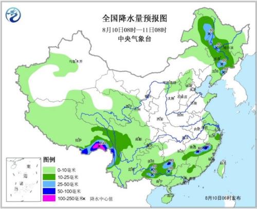 未来24小时,内蒙古东北部、东北地区中部、江南中部、广西中北部、川西高原中部、西藏东部、云南西北部等地的部分地区有中到大雨,西藏东南部等局地有暴雨或大暴雨。