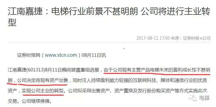 股民的观点是被某个互联网公司(目前股民热议这个互联网公司可能是360)借壳上市了。只是可惜了,好好一个电梯公司即将成为互联网为主业的公司了。