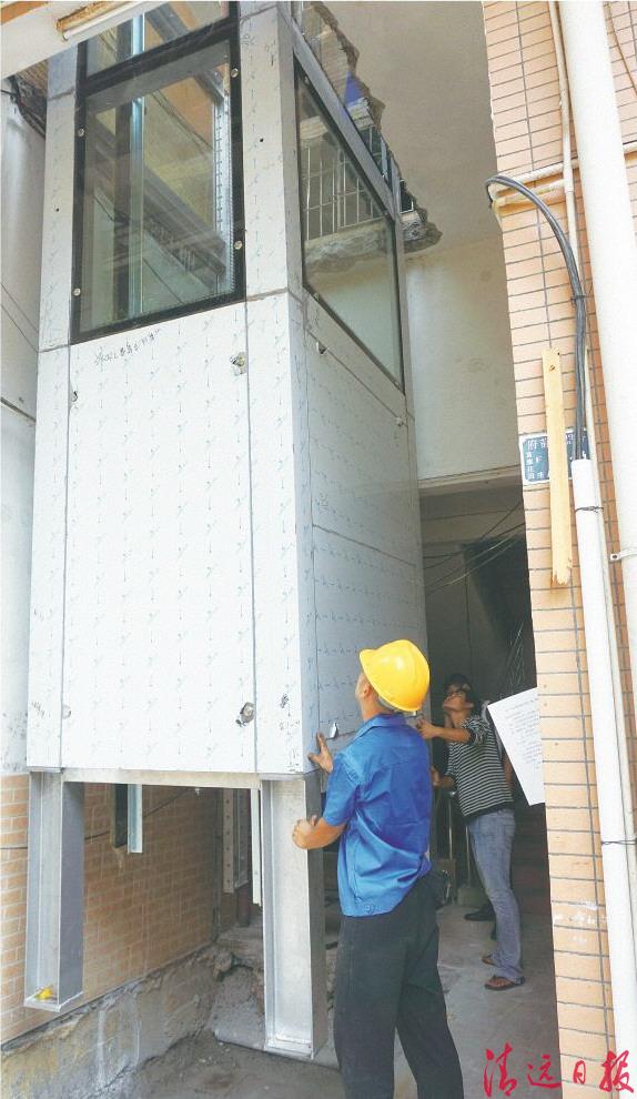 8月13日上午,在清新区的富康花园A座,一部被称为“微梯”的电梯正式开始安装。