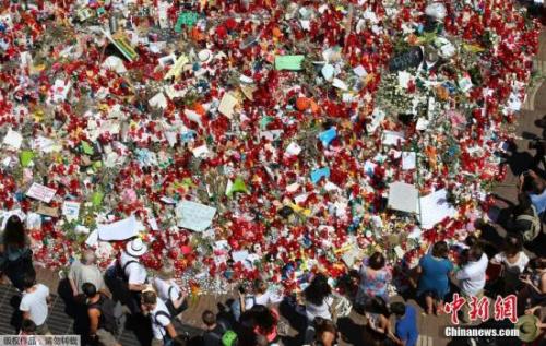 资料图:巴塞罗那民众在兰布拉大道上悼念遇难者。
