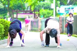 几十个中老年人戴着手套,在公园道里爬行,一爬一顿,还不时摇头摆脑。记者了解到,这项活动的倡导者是87岁高龄的李培良,20多年前,因身体严重损伤,他摸索出这套“龟蛇爬”。因坚持在越秀公园爬行,受他影响和带动,便出现了集体爬行的这一幕。