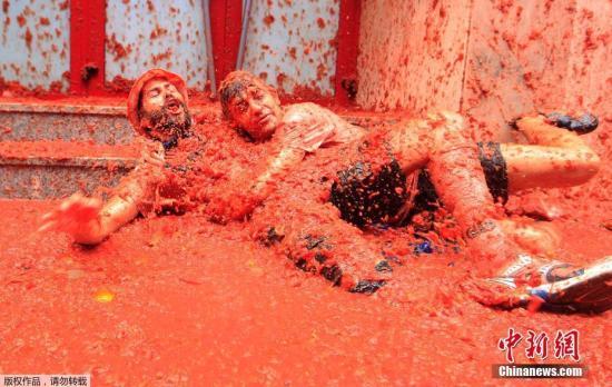 报道称,“番茄大战”被称为“全球最大的食物大战”,每年吸引不少外国人前往参加,尤其是英国、日本和美国人。2017年是第72年庆祝这个重大节日。卡车上卸下约160公吨成熟的蕃茄,充当现场2.2万人的武器,这些人中有2/3是外国人。长达1小时的“蕃茄大战”中,半裸的狂欢者在狭窄的街道上朝彼此丢掷蕃茄。