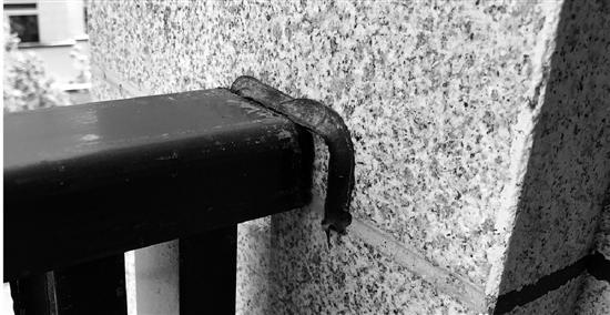 记者用力晃动阳台栏杆后发现,栏杆确实已经松动。贺工表示,正常的栏杆,应该埋入墙体内,或用铆钉固定,用胶水连接存在非常大的安全隐患。