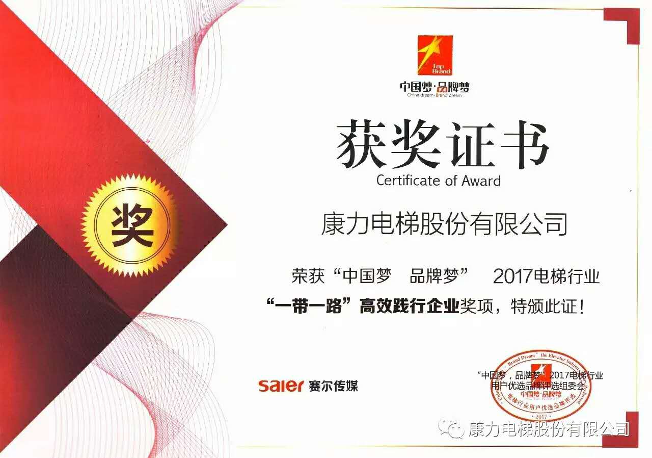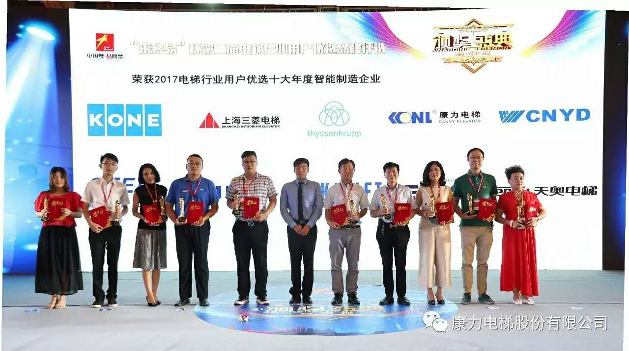 为电梯品牌匠造,为品牌梦想助力。9月8日,由赛尔传媒组织的“中国梦·品牌梦”第二届电梯行业用户优选品牌评选颁奖盛典暨L型经济的转型和升级—房地产和电梯行业高峰论坛在上海星河湾酒店盛大开幕。来自中国房地产业协会、中国房地产技术联盟、上海电梯协会、苏州电梯商会、广东省特种设备检测院等大批行业专家、学着、企业代表等近三百人莅临现场,共襄盛举。康力电梯受邀参加会议,并荣获“2017电梯行业用户优选十大知名整梯品牌”、“十大年度智能制造企业”、“一带一路”高效践行企业”等多项重量级大奖,以非凡成就铸造电梯行业年度经典!