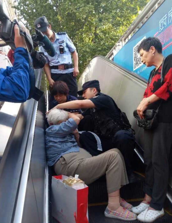 9月15日,南京秦淮警方接到群众报警称,在新街口地下商场的扶梯上,有位老人不慎摔倒伤及头部,情况严重。