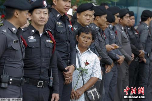 当地时间2016年4月1日,泰国曼谷最高法院外,维护秩序警察。