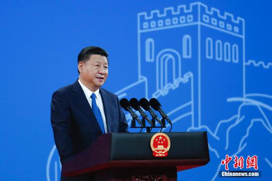 9月26日,中国国家主席习近平在北京国家会议中心出席国际刑警组织第86届全体大会开幕式并发表题为《坚持合作创新法治共赢携手开展全球安全治理》的主旨演讲。中新社记者杜洋摄