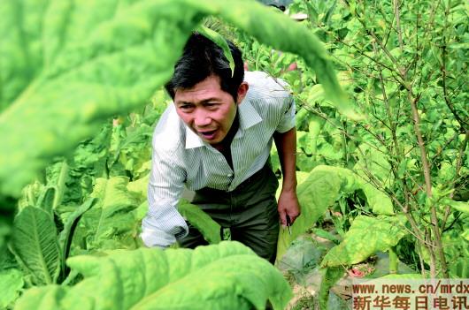 余启良在烤烟种植基地劳作。本报记者田朝晖摄
