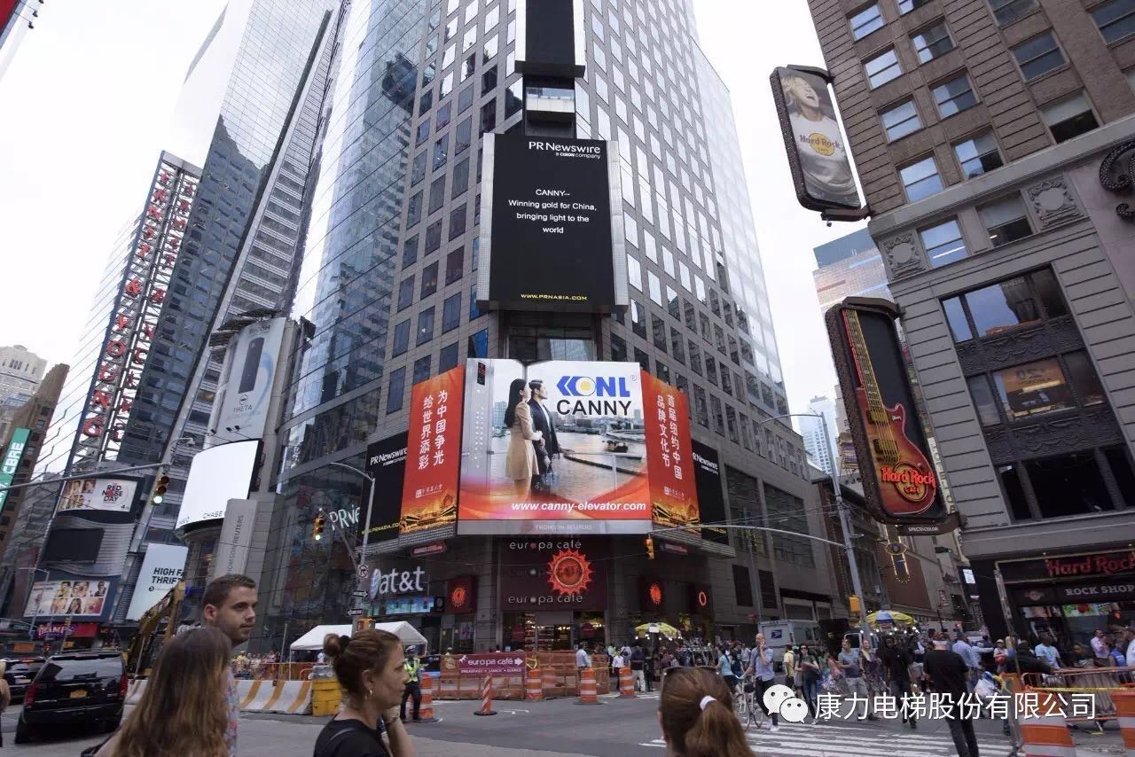 2015-2016年,康力电梯作为中国电梯行业唯一品牌,携手华为、海尔等领军企业登陆纽约时代广场,向全世界展示中国品牌的独特魅力!