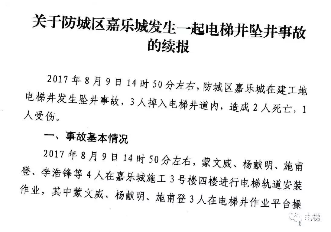 第三季度也发生一起大事故,广西建工电梯空调工程有限责任公司,负责安装防城港市防城区嘉乐城3号楼电梯时发生2人死亡、1人受伤事故。自治区质监局要求,针对第三季度电梯安装改造修理单位不良信息的通报,各市质监局、特种设备检验机构及电梯相关单位,督促被通报的单位及时整改,并加大对违法违规电梯单位的查处力度,确保电梯安全运行。