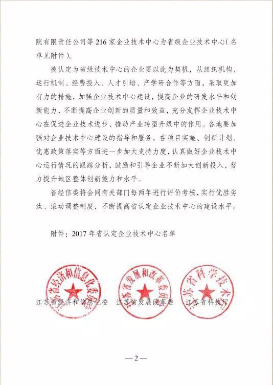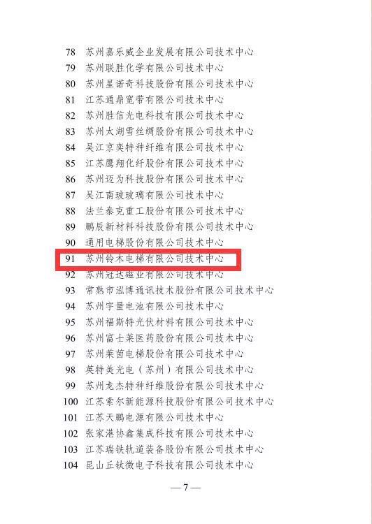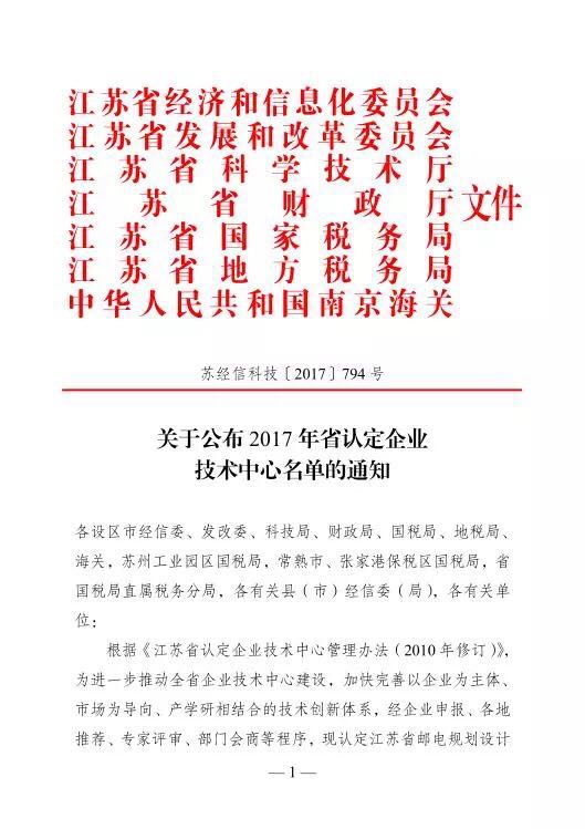 近日,江苏省经信委、江苏省发改委、江苏省科技厅、江苏省国税局、江苏省地税局以及南京海关联合发文,发布了《关于公布2017年省认定企业技术中心名单的通知》(苏经信科技【2017】794号)文件,新认定了216家企业技术中心为省级企业技术中心。苏州铃木电梯有限公司技术中心在列。