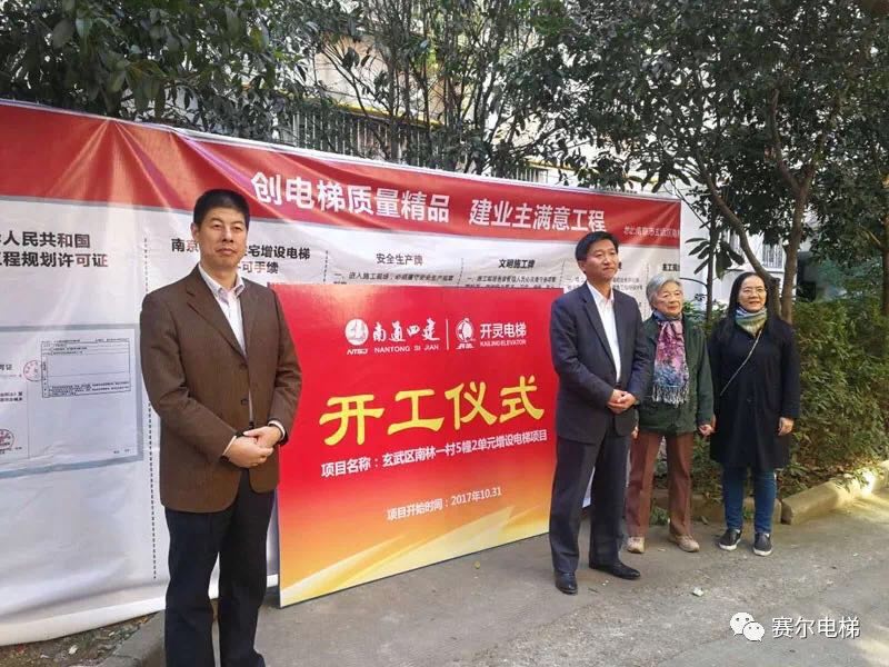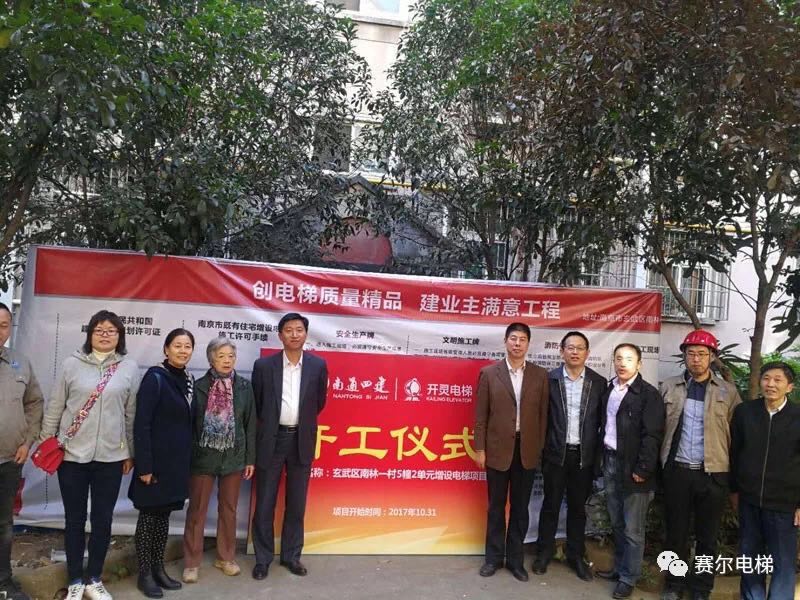 既有住宅加装电梯,是一个关乎民生但又可能众口难调的难题,这次首先在玄武区南林一村5幢2单元增设电梯,开灵电梯将为既有住宅量身定制四面观光电梯,以美观的外型将电梯与建筑融为一体,以通透的井道与轿厢设计实现观光的绝美视觉体验。开灵电梯将结合既有住宅的实际情况,以占地面积小、模块化生产、积木式安装时间短等优点,为既有宅在增设电梯解决了这个难题。开工仪式上,村主任竹主任、社区主任朱主任、南通四建南京分公司张主任、开灵电梯陆副总与居民们一起因电梯梦想成真而倍感喜悦。
