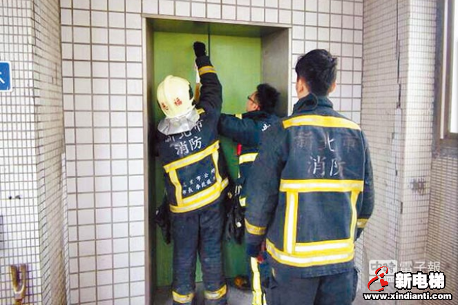 逾2万部电梯许可证逾期,成为公共安全问题。图为电梯故障,警消人员急撬开电梯门救人。