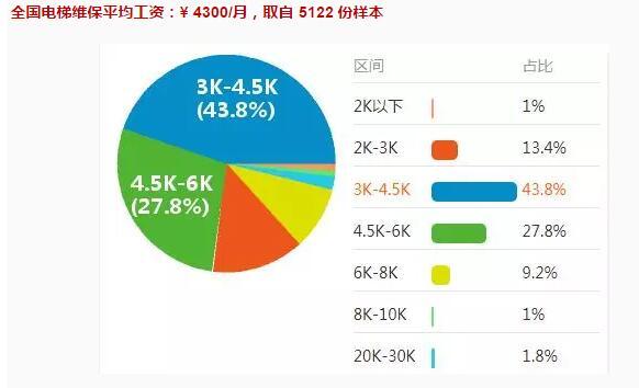 全国电梯维保平均工资:¥4300/月,取自5122份样本