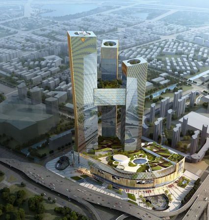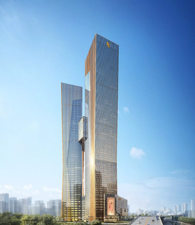 金鹰世界由法国国家注册建筑师FredericRolland亲自操刀设计,总投资超百亿人民币,总体量约92万方,商业体量约50万方,是一个集高端办公、五星酒店、购物中心于一体的超高层城市综合体建筑。