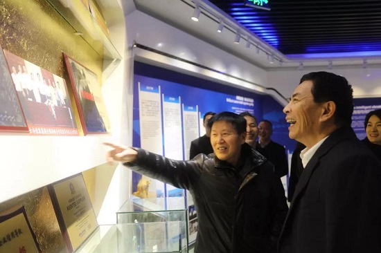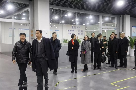 ▲董事长钱江明陪同佳源集团董事长沈玉兴领导一行参观检测中心