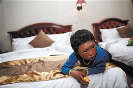 昨晚在入住的宾馆房间,“冰花男孩”王福满的头倚在床边,回忆着1月19日发生的一切:他第一次出远门,第一次坐飞机,第一次吃烤鸭,第一次看到那么多的高楼大厦,和那么多汽车。这也是王福满第一次与梦想中的城市北京,来一次零距离接触。