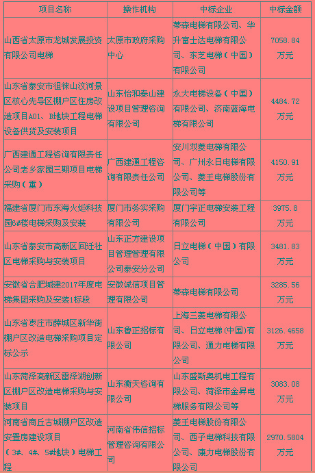 2017年,还涌现出一批医院类电梯采购大项目,例如,中标金额为1847万元的安庆市第一人民医院龙山院区电梯采购及安装等项目。