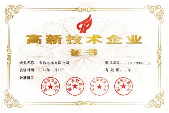 据悉,知名电梯品牌韦伯电梯继2014年首次获得“高新技术企业”荣誉证书后,于2017年11月再次蝉联,成功获得高新技术企业荣誉证书。科技启迪上下,专业保障安全。韦伯电梯作为一家集电梯研发、制造、安装、改造及维修保养于一体的专业化企业,拥有国家特种设备制造和安装、改造、维修的双“A”资质。此次再次荣获“高新技术企业”证书,既是其连续每年15%高增长速度的见证,也是市场、行业、用户对韦伯电梯产品高度认可的象征,正可谓实至名归。