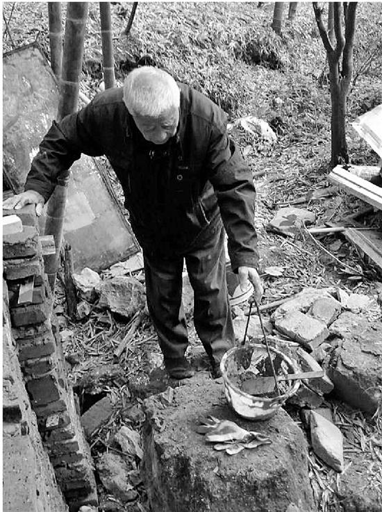 亲自动手的钟老师,工装外套里头还穿着病号服。