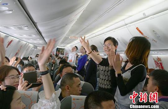 随着时尚、轻快的音乐在客舱响起,4位空乘踏着优美的舞步由前舱进入客舱,旅客由开始的惊讶、惊喜到欢乐地参与其中。舞蹈结束,客舱内响起了热烈的掌声。