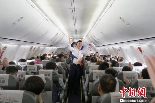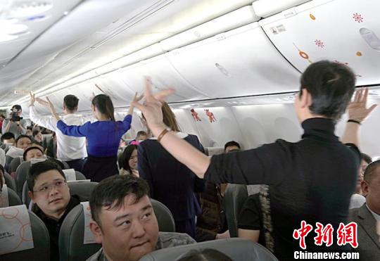 空乘自创健身舞倡乘机新体验万米高空百人共舞闹元宵黄雁摄