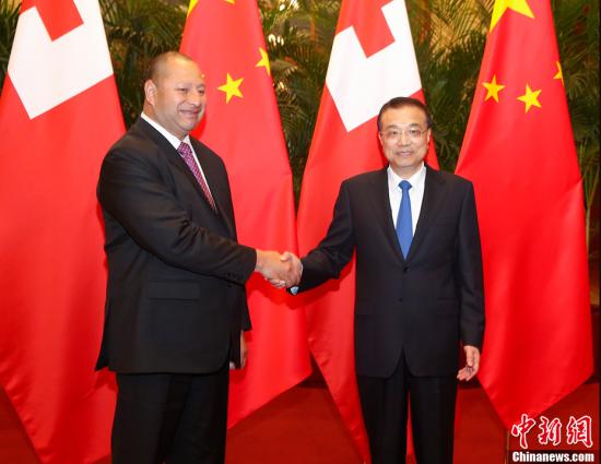 李克强表示,汤加是中国在太平洋岛国地区的好朋友、好伙伴。习近平主席同国王陛下举行富有成果的会谈,有力推动两国关系发展。我们赞赏汤方坚定奉行一个中国政策,愿以两国建交20周年为契机,巩固政治互信,将“一带一路”倡议同汤加发展战略更好对接,扩大各领域务实合作,密切人文交流,推动两国关系不断迈上新台阶。中方支持汤加重大生产项目、基础设施和民生工程建设,愿同汤加开展农业技术交流,也欢迎汤加优质农渔业产品进入中国市场。