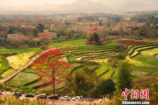 在七叉镇尼下村,依山傍水的优美环境让游客陶醉,站在岸边眺望,木棉红遍山谷;乘坐游船置身昌化江中,两岸繁花盛开,让人仿佛置身画中。