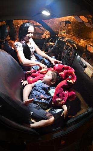 李少云和依依在出租车中。黄士峰/摄
