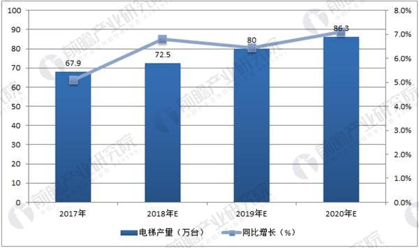 从全国电梯产量以及保有量增速来看,增速都将有所放缓,并且进入平稳阶段。数据显示,2017年中国电梯累计产量为67.9万台,累计增长5.1%。据前瞻数据库预测,2018年中国电梯累计产量为72.53万台,累计增长约6.8个百分点。