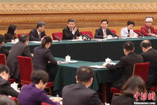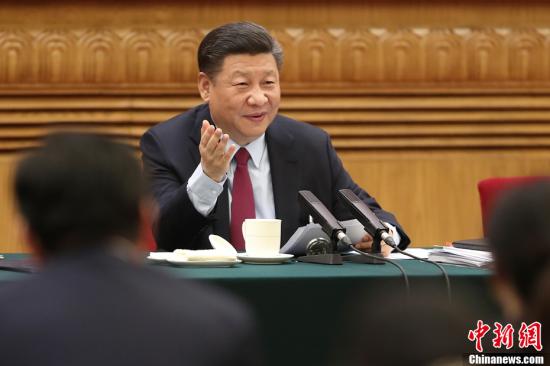 3月7日,中共中央总书记、国家主席、中央军委主席习近平参加十三届全国人大一次会议广东代表团的审议。中新社记者盛佳鹏摄