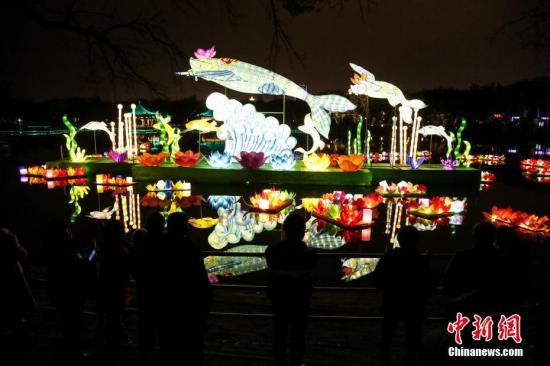 2月23日晚,众多市民来到东湖赏灯。当日,武汉东湖灯会盛大开幕,六大主题灯区、五十一组彩灯点亮大美东湖。东湖畔,流光溢彩,等候多时的市民开始赏灯之旅。灯海、光趣、人潮、笑脸将武汉东湖妆点得热闹非凡。中新社记者张畅摄