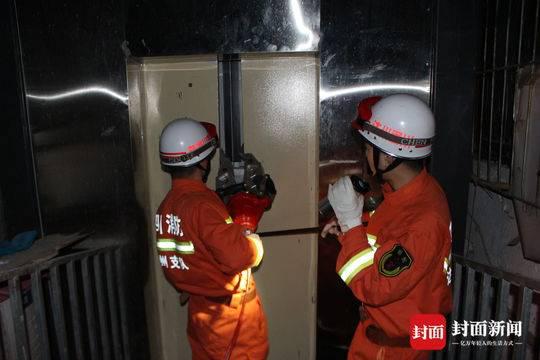 消防官兵打开电梯外门